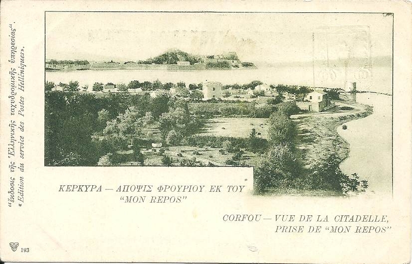 Lot1392 - Επιστολικό Δελτάριο Στρατιωτικό ΑΤΕΛΕΣ Ιπτάμενου Ερμή 10 λεπτών μη ταχυδρομημένο, Κέρκυρα άποψη Φρουρίου από το MON REPOS, αρ 193
