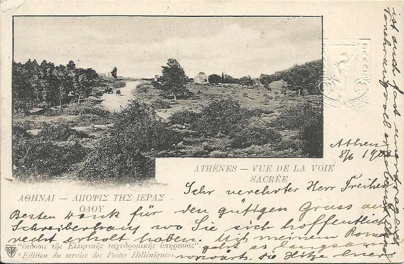 Lot1405 - Επιστολικό Δελτάριο Ιπτάμενου Ερμή 10 λεπτών ταχυδρομημένο, Αθήνα άποψη της Ιεράς Οδού, αριθμός 18