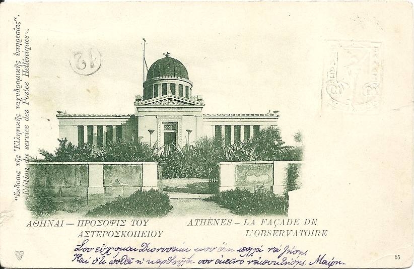 Lot1414 - Επιστολικό Δελτάριο Ιπτάμενου Ερμή 10 λεπτών ταχυδρομημένο, Αθήνα πρόσοψη του Αστεροσκοπείου, αριθμός 65