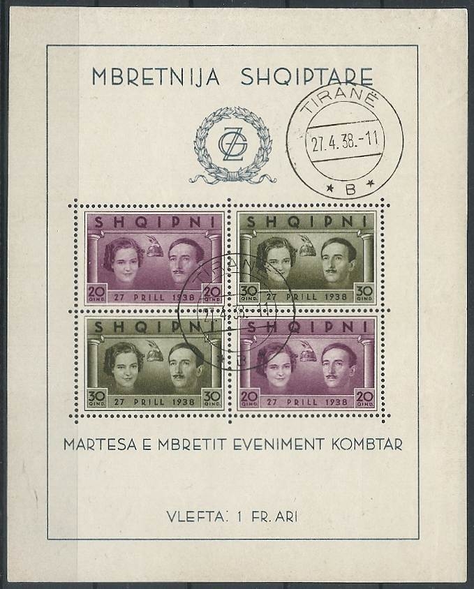 Lot1746 - Αλβανία 1938, κατάλογος Michel No BL1 ☉