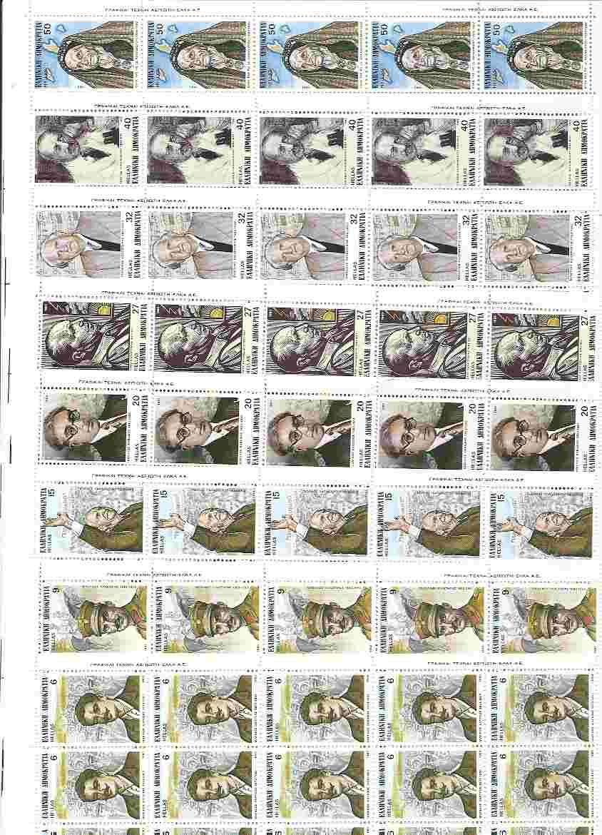 Lot1003 - ΕΛΛΑΔΑ 1983 αναμνηστική έκδοση για τις προσωπικότητες πλήρης σειρά σε φύλλα των 50 σειρών **