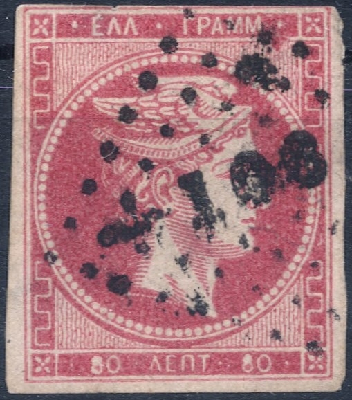Lot0126 - ΕΛΛΑΔΑ 1862-1867 80 λεπτά ροδοκαρμινόχρωμο (rose carmine) με λευκάζον '8' ☉