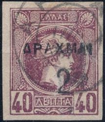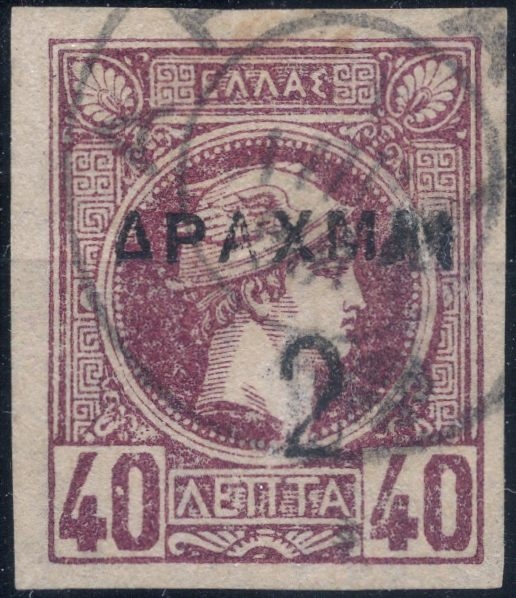 Lot0338 - ΕΛΛΑΔΑ 1900 2 δρχ/40 λεπτά έκδοση Αθηνών χαριστικά σφραγισμένο με επισήμανση βιολέ (violet) χωρίς οδόντωση ☉