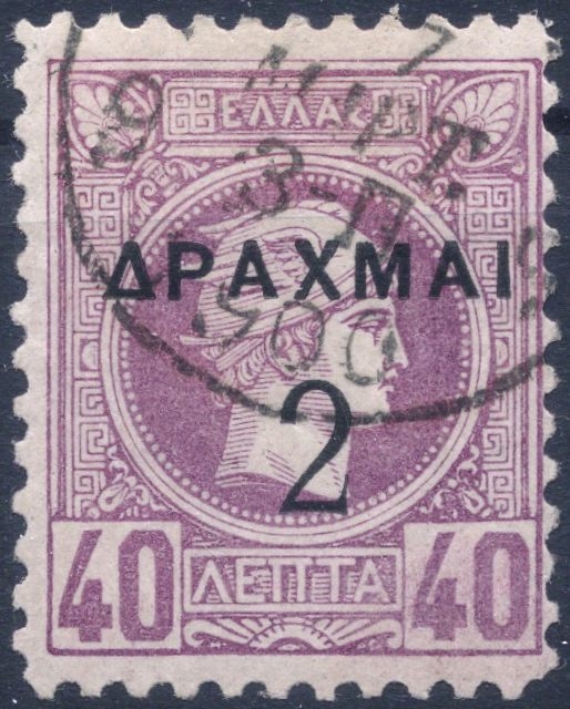 Lot0340 - ΕΛΛΑΔΑ 1900 2 δρχ/40 λεπτά έκδοση Βελγίου χαριστικά σφραγισμένο με επισήμανση βιολέ (violet) χωρίς οδόντωση ☉