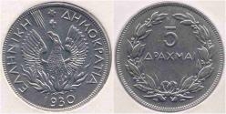 Lot2418 - ΕΛΛΑΔΑ 1930 5 δραχμές κοπή Λονδίνου, Αριθμός καταλόγου Hellas : 177