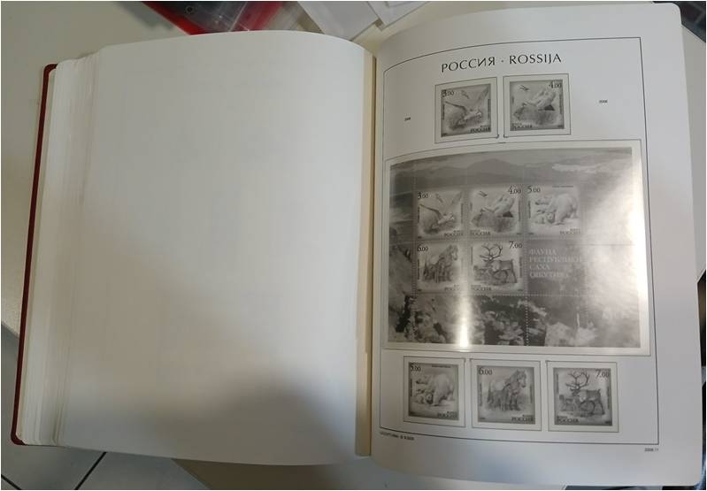 Lot2732 - ΡΩΣΙΑ 65 εικονογραφημένα φύλλα LEUCHTTURM 2003-2007 σε κόκκινο σκληρόδετο άλμπουμ