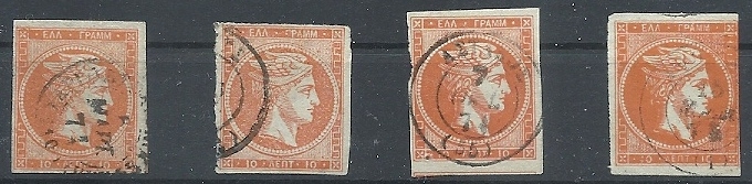 Lot0181 - ΕΛΛΑΔΑ 1871-1876 λαχνός με 4 τεμ των 10 λεπτών σε διάφορες αποχρώσεις ☉
