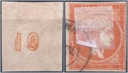 Lot0248 - ΕΛΛΑΔΑ 1875-1880 10 λεπτά κόκκινο πορτοκαλί (red orange ), διπλός αριθμός ελέγχου (double CF) ☉