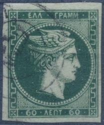 Lot0210 - ΕΛΛΑΔΑ 1876 60 λεπτά βαθύ πράσινο σε πράσινο (deep green on green) ☉