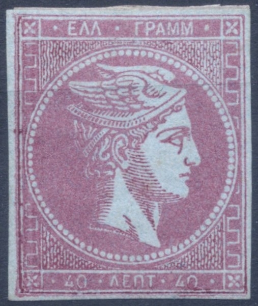 Lot0112 - ΕΛΛΑΔΑ 1862-1867 40 λεπτά γκρι-μωβ σε μπλε (grey-mauve on blue) με διαφάνεια κάτω δεξιά *