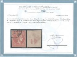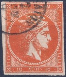 Lot0235 - ΕΛΛΑΔΑ 1875-1880 10 λεπτά κόκκινο-πορτοκαλί (red-orange), θέση πλάκας 93, συνοδεύεται με πιστοποιητικό Παπαθανασίου ☉