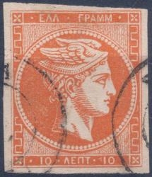 Lot0227 - ΕΛΛΑΔΑ 1875-1880 10 λεπτά πορτοκαλί (orange), θέση πλάκας 88, συνοδεύεται με πιστοποιητικό Παπαθανασίου ☉