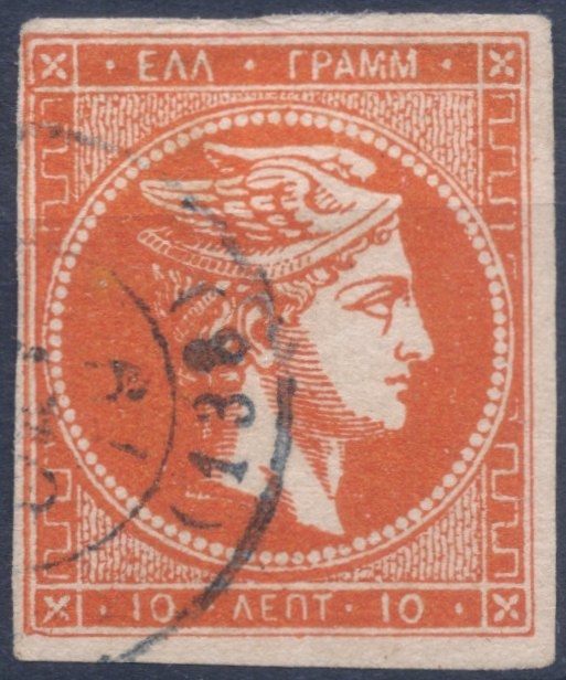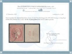 Lot0242 - ΕΛΛΑΔΑ 1875-1880 10 λεπτά βαθύ κόκκινο-πορτοκαλί (deep red-orange),με ΑΕ '01' αντί για '10', θέση πλάκας 101, συνοδεύεται με πιστοποιητικό Παπαθανασίου ☉