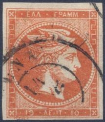 Lot0249 - ΕΛΛΑΔΑ 1875-1880 10 λεπτά βαθύ κόκκινο-πορτοκαλί (deep red-orange), διπλός Αριθμός Ελέγχου (ΑΕ), θέση πλάκας 109, συνοδεύεται με πιστοποιητικό Παπαθανασίου ☉