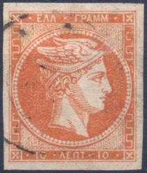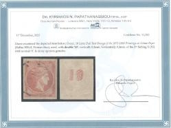 Lot0250 - ΕΛΛΑΔΑ 1875-1880 10 λεπτά άτονο κόκκινο-πορτοκαλί (dull red-orange), με διπλό ΑΕ, συνοδεύεται με πιστοποιητικό Παπαθανασίου ☉