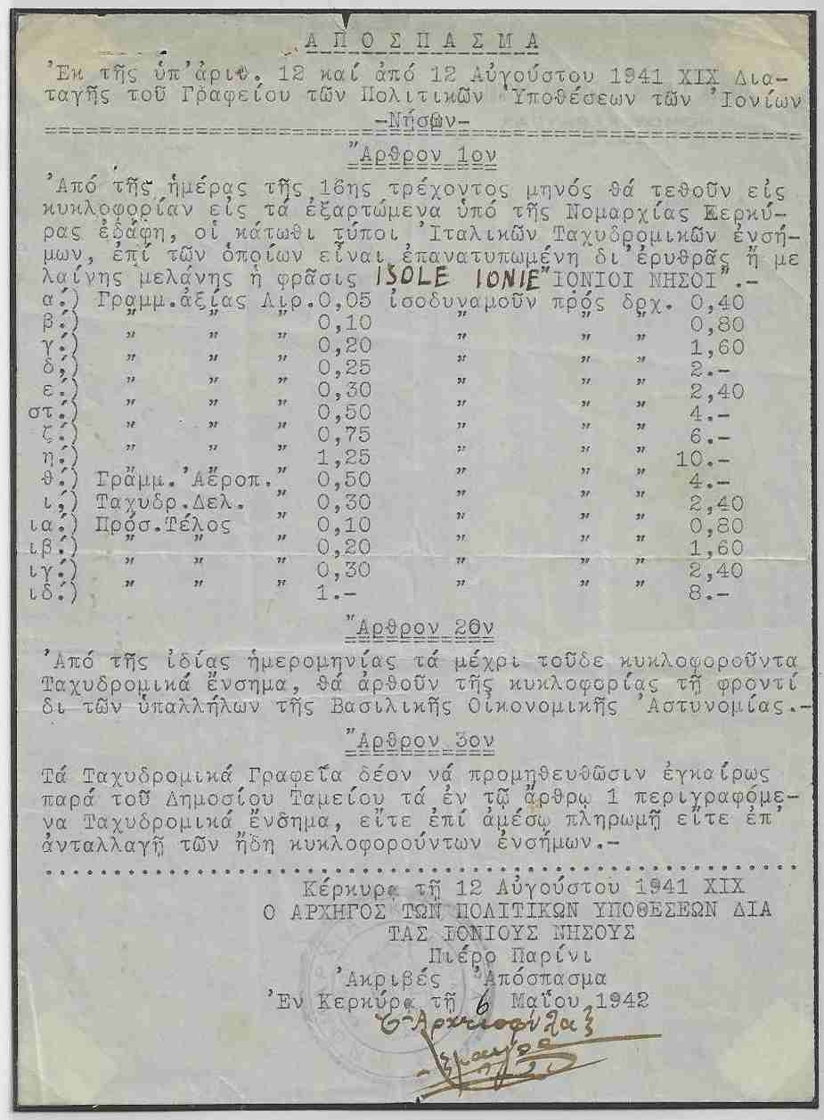 Lot1377 - ΕΛΛΑΔΑ 1941, απόσπασμα Κυκλοφορίας ISOLE IONIE (IONIOI NHΣΟΙ)