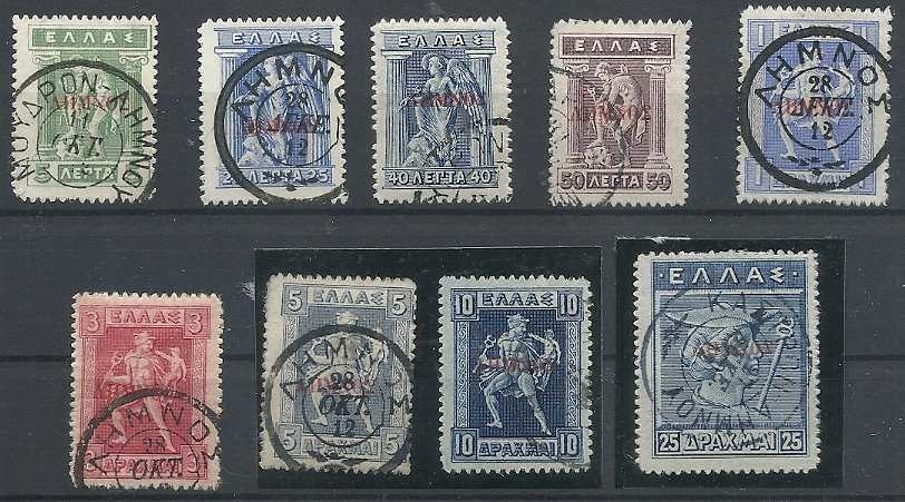 Lot0549 - ΕΛΛΑΔΑ 1912-1913, επισήμανση ΛΗΜΝΟΣ κόκκινη ☉