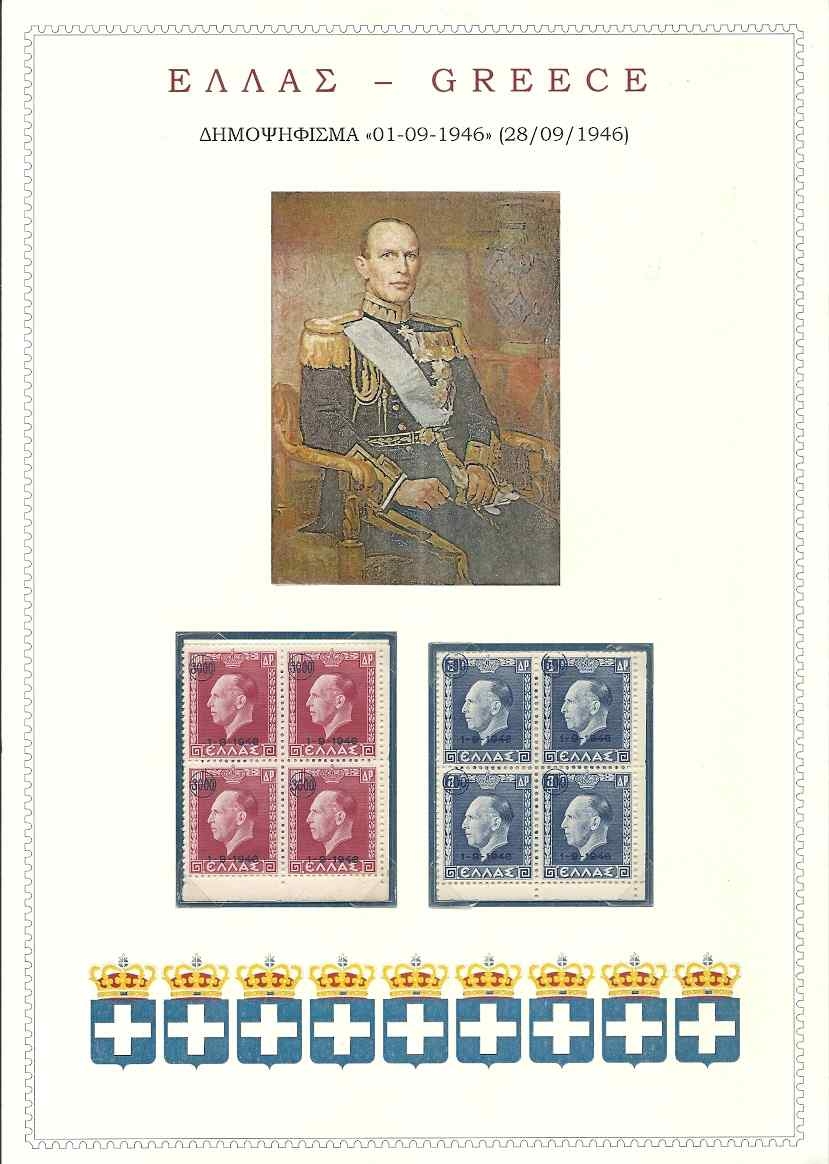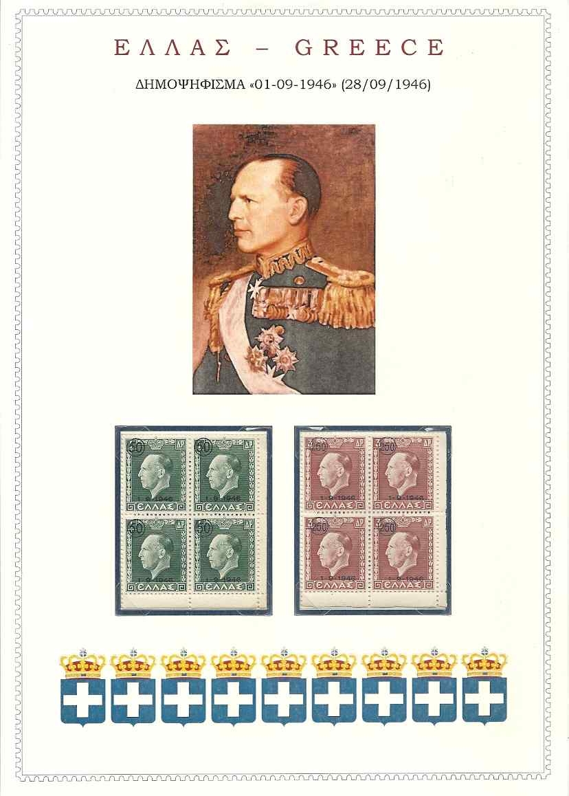 Lot0670 - ΕΛΛΑΔΑ 1946, Αναμνηστική έκδοση Δημοψηφίσματος 1-9-46, τετράδες γωνιακές **/bl4