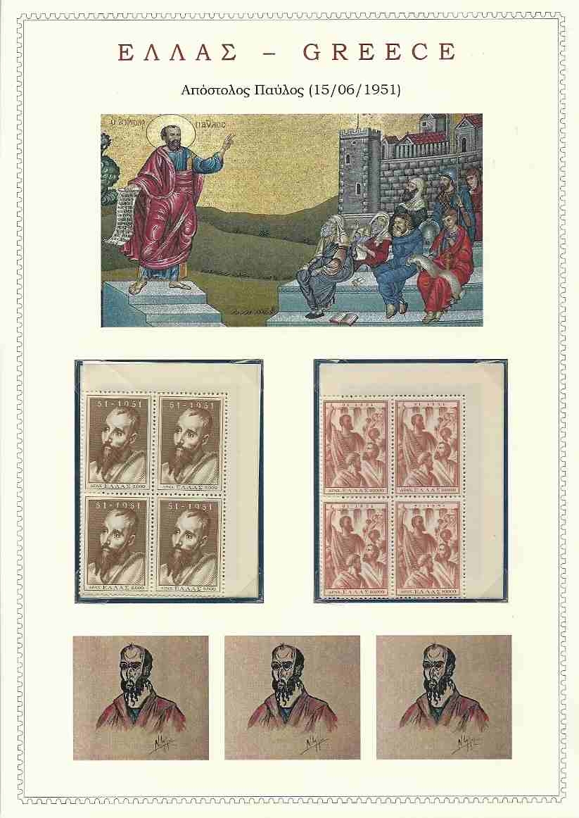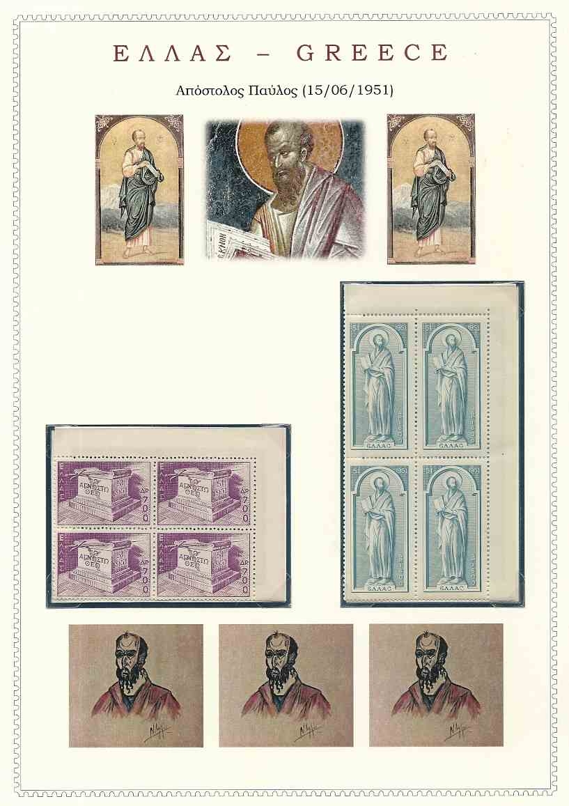 Lot0681 - ΕΛΛΑΔΑ 1951 Αναμνηστική έκδοση ΑΠΟΣΤΟΛΟΥ ΠΑΥΛΟΥ, τετράδα γωνιακή **/bl4