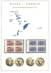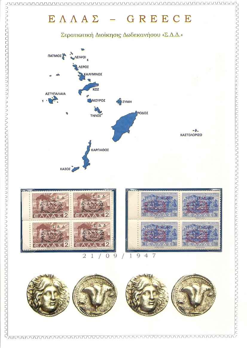 Lot0905 - ΕΛΛΑΔΑ 1947 Νέες χώρες, Δωδεκάνησος, Επισήμανση Στρατιωτική Δοίκησης Δωδεκανήσου ΣΔΔ, τετράδες γωνιακές **/bl4