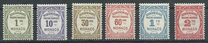 Lot1894 - Μονακό 1925/32, κατάλογος Michel No 21 - 26 Portomarken *