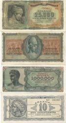 Lot2339 - ΕΛΛΑΔΑ 1944 λαχνός με 4 διαφορετικά χαρτονομίσματα