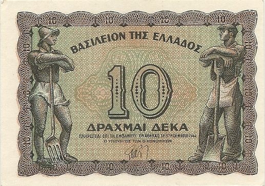 Lot2345 - ΕΛΛΑΔΑ ΒΑΣΙΛΕΙΟΝ 10 δραχμές 9-11-1944, αριθμός καταλόγου Πητίδη - Στρατουδάκη : 322