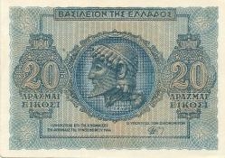 Lot2346 - ΕΛΛΑΔΑ ΒΑΣΙΛΕΙΟΝ 20 δραχμές 9-11-1944, αριθμός καταλόγου Πητίδη - Στρατουδάκη : 323