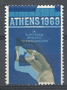 Lot2024- ΕΛΛΑΔΑ Ευρωπαϊκοί Αγώνες 1969 στην Αθήνα, στην αγγλική γλώσσα, με μετατόπιση χρώματος