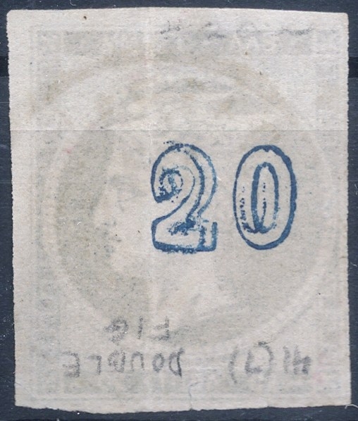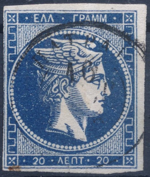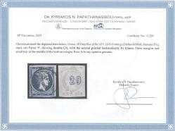 Lot0188 - ΕΛΛΑΔΑ 1871-1876 20 λεπτά μπλε βαθύ (deep blue) με διπλό ΑΕ, συνοδεύεται με πιστοποιητικό Παπαθανασίου ☉