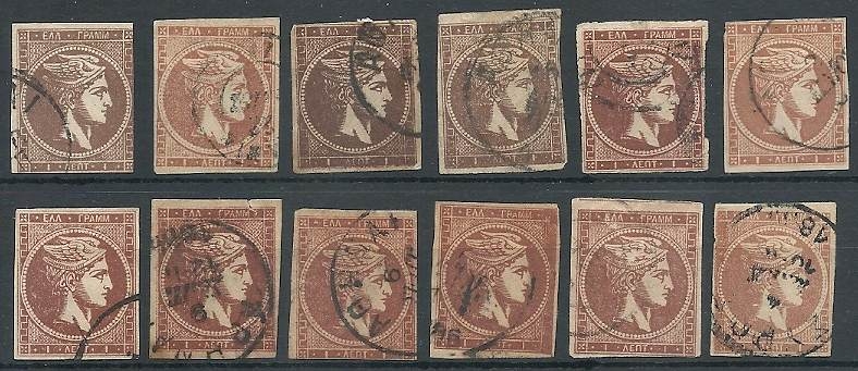 Lot0380 - ΕΛΛΑΔΑ Λαχνός με 12 1λ 1880-1886 ☉