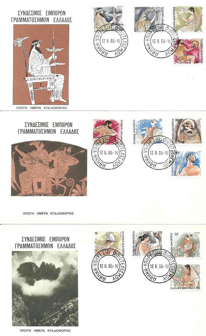 Lot1049 - ΕΛΛΑΔΑ 1986 ΦΠΗΚ έκδοση για τους Θεούς του Ολύμπου με οδόντωση σε 3 φακέλους ✉