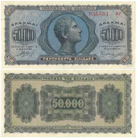 Lot2325 - ΕΛΛΑΔΑ 50.000 δραχμές 14-1-1944, αριθμός καταλόγου Πιτίδη - Στρατουδάκη : 124