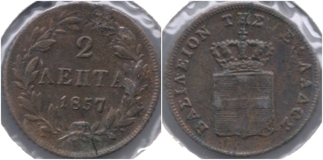 Lot2405 - ΕΛΛΑΔΑ 1857 Βασιλεύς 'Οθων 2 λεπτά με σπάσιμο μήτρας, αριθμός καταλόγου Hellas : 54