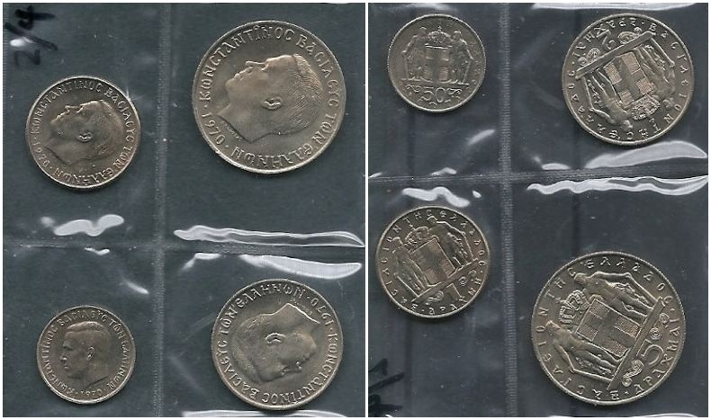 Lot2425 - ΕΛΛΑΔΑ 1970 Βασιλεύς Κων/νος Β' σετ με νομίσματα 50λ - 1δρχ - 2 δρχ - 5 δρχ