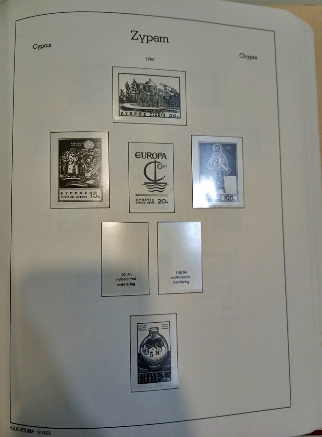 Lot2727 - ΚΥΠΡΟΣ 35 εικονογραφημένα φύλλα LEUCHTTURM, 1960-1977, σε κόκκινο σκληρόδετο album ---