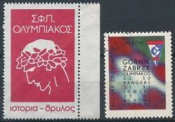 Lot2014 - 2 βινιέτες του Ολυμπιακού (Ο.Σ.Φ.Π.). 1) Ιστορία-Θρύλος, 1972. 2) Από την ποδοσφαιρική αναμέτρηση με την Gornik Zabrze, 1970