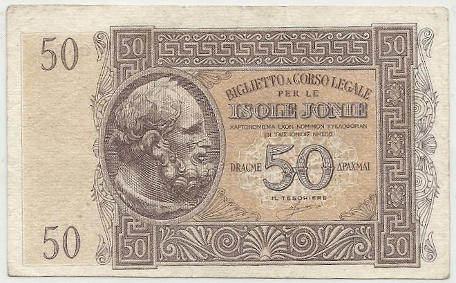 Lot2320 - ΕΛΛΑΔΑ Ιταλική Κατοχή 1941 50 δραχμές με τον Δία, αριθμός καταλόγου Πιτίδη - Στρατουδάκη : 349