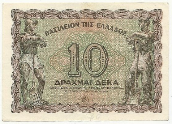 Lot2323 - ΕΛΛΑΔΑ Βασίλειον της Ελλάδος Νέες Χώρες 9-11-1944 10 δραχμές, αριθμός καταλόγου Πιτίδη - Στρατουδάκη : 322