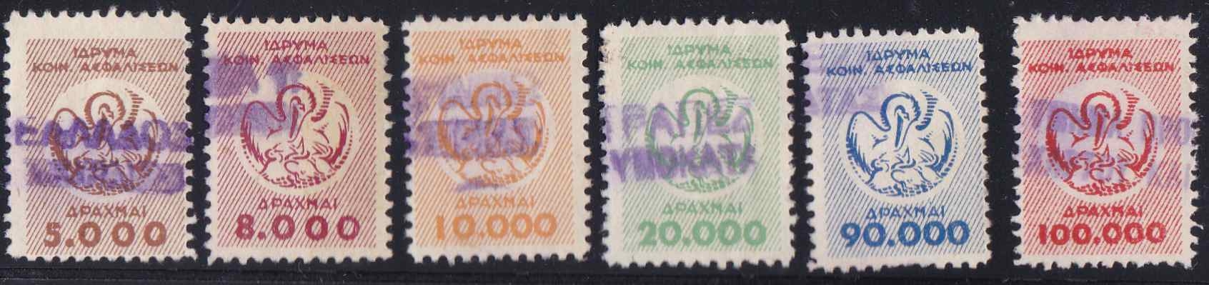 Lot1180 - ΕΛΛΑΔΑ 1941, 6 ένσημα ΙΚΑ σφραγισμένα