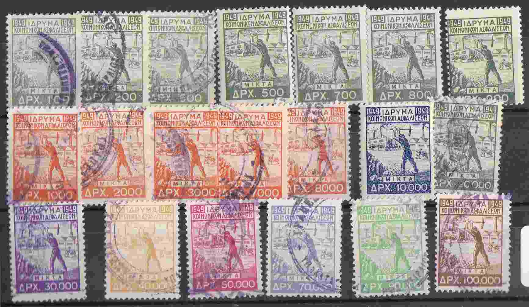 Lot1181 - ΕΛΛΑΔΑ 1949, 20 ένσημα ΙΚΑ εργατικά