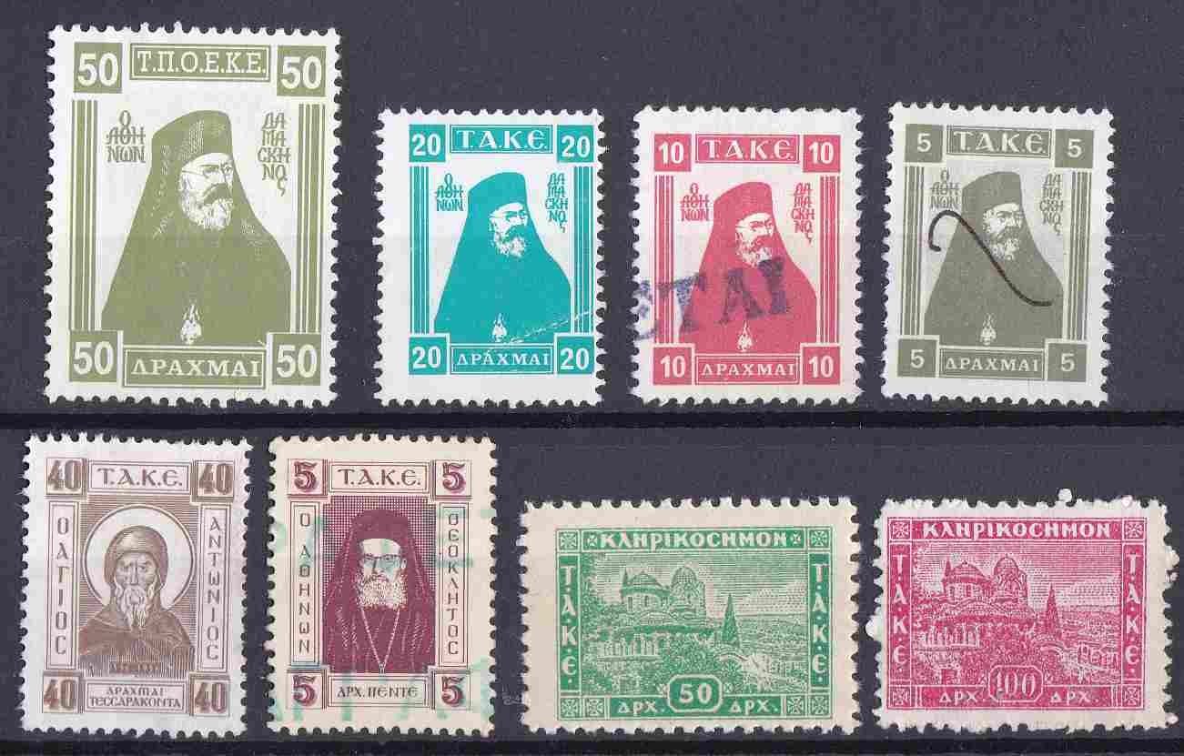 Lot1183 - ΕΛΛΑΔΑ 1955-1965, 8 κληρικόσημα ΤΑΚΕ & ΤΠΟΕΚΕ