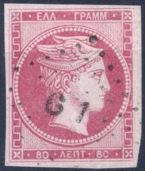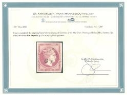 Lot0021 - ΕΛΛΑΔΑ 1861 80 λεπτά καρμινόχρωμο σε λεπτό χαρτί (carmine on thin paper) πολύ σπάνιο, συνοδεύεται με πιστοποιητικό Παπαθανασίου ☉