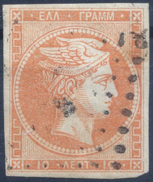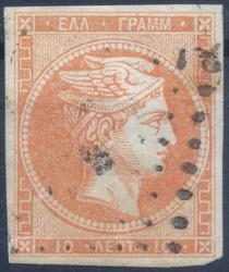 Lot0136 - ΕΛΛΑΔΑ 1868-1869 10 λεπτά κόκκινο πορτοκαλί (red orange) με ανεστραμμένο '1' (inverted '1') ☉