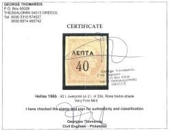Lot0349 - ΕΛΛΑΔΑ 1900 20/2 λεπτά στενό '0' (narrow '0'), συνοδεύεται με πιστοποιητικό George Thomareis *