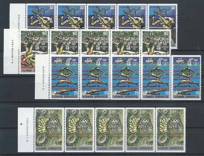 Lot0722 - ΕΛΛΑΔΑ 1989 4 πεντάδες Χωρίς Οδόντωση με νούμερο μπάντας '15' της σειράς 'Ελλάδα Χώρα Ολυμπιακών Αγώνων' **/bl5