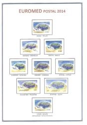 Lot0760 - ΕΛΛΑΔΑ 2014 EUROMED POSTAL, 2 εικονογραφημένα φύλλα με 10 γραμματόσημα από 9 χώρες, το Ελληνικό γραμματόσημο υπάρχει και στην έκδοση Χωρίς οδόντωση **