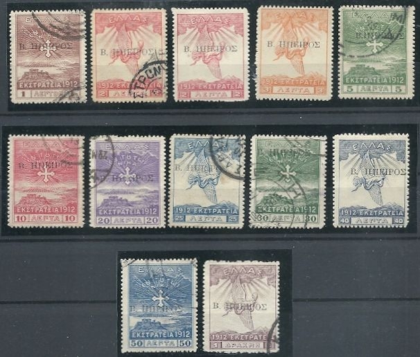 Lot0866 - ΕΛΛΑΔΑ 1914, Νέες Χώρες, Βόρειος Ήπειρος επισήμανση γραμματοσήμων 'Εκστρατείας' ☉