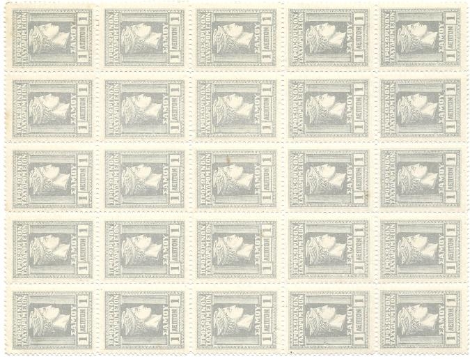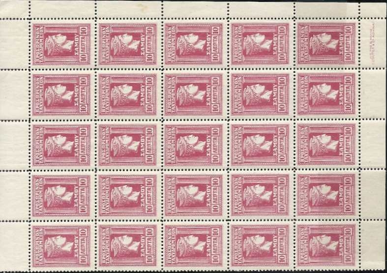 Lot0961 - ΕΛΛΑΔΑ 1912 Νέες χώρες, Σάμος, Κεφαλή του Ερμή σε κομμάτι φύλλου 25 σειρών, με υπογραφή του βουλευτή Αδαμίδη **