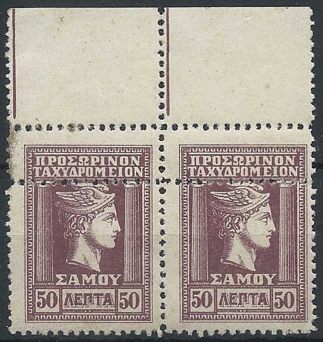 Lot0965 - ΕΛΛΑΔΑ 1912 Νέες χώρες, Σάμος, Κεφαλή του Ερμή 50 λεπτά με διπλή οδόντωση σε ζευγάρι **